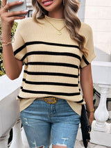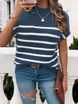 *5 COLORS* Striped Mock Neck Short Sleeve Sweater