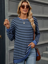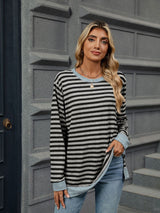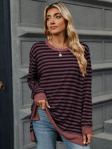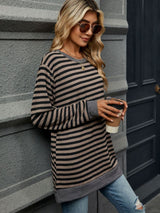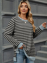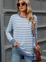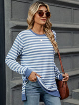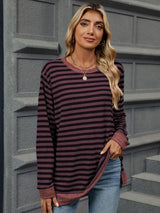 *8 COLORS* Striped Round Neck Long Sleeve Top