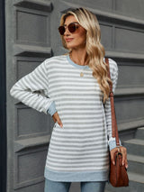 Elevate your wardrobe with our Striped Round Neck Long Sleeve Top. Featuring a classic round neck and trendy stripes, this top is a versatile addition to any outfit. Stay comfortable and stylish all day long!