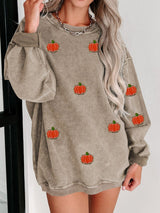 2 COLORS - Pumpkin Round Neck Long Sleeve Sweatshirt