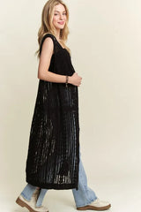 This Button Down Crochet Long Cardigan features a stylish crochet design that adds a bohemian touch to any outfit. The button-down front allows for versatile styling options, whether worn open or closed. The long length provides added coverage and creates a flattering silhouette, making it a versatile and chic wardrobe essential.