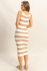 Striped Scoop Neck Wide Strap Knit Dress
