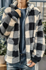4 COLORS - Plaid Long Sleeve Hooded Coat