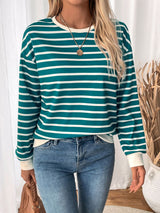 Striped Contrast Round Neck Long Sleeve Sweatshirt