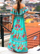 5 COLORS Floral Off Shoulder Ruffle Maxi Dress