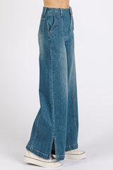 Mittoshop Medium Wash Seam Detail Wide Leg Denim Jeans