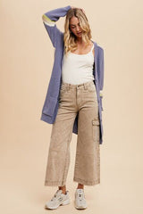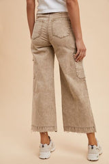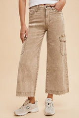 Raw Hem Wide Leg Jeans with Cargo Pockets