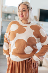 Stay cozy and stylish with our Bigger is Better Mod Floral Sweater. Made with a mid-weight sweater knit, it's perfect for any weather. The crew neckline and large scale mod floral print in neutral tones add a touch of chic to your wardrobe.