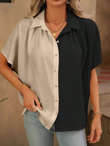 *4 COLORS* Contrast Collared Neck Short Sleeve Shirt