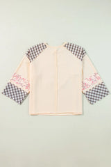 2 COLORS Heart Plaid Round Neck Long Sleeve Blouse