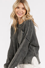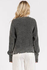 Distressed Hem Round Neck Dropped Shoulder Sweater