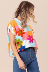 The Flower Patch Checkered Sweater Vest is a trendy and unique addition to your fall wardrobe. With flower patches on a checkered design, this sweater vest combines whimsical and classic elements for a fun and stylish look. The vest style adds a layer of warmth and texture to your outfit, perfect for cooler weather. Pair it with a long-sleeve shirt or blouse underneath for a cozy and layered ensemble. The intricate flower patches offer a playful and eye-catching detail that sets this sweater vest apart. Elevate your autumn look with the charming and fashionable Flower Patch Checkered Sweater Vest for a chic and personalized style statement.