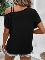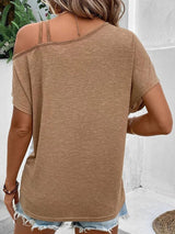 *4 COLORS* Contrast Asymmetrical Neck Short Sleeve T-Shirt