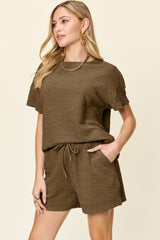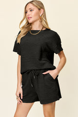 *5 COLORS* Texture Short Sleeve T-Shirt and Drawstring Shorts Set