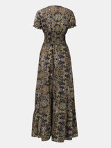 *6 COLORS* Hippie Chic Smocked Printed V-Neck Short Sleeve Dress