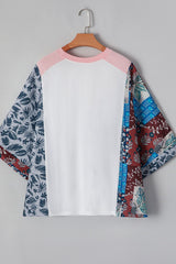 Peace Desert Graphic Asymmetric Printed Patchwork Sleeve Top