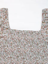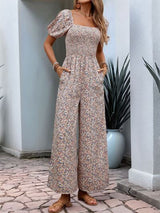 Ditsy Floral Smocked Square Neck Puff Sleeve Jumpsuit